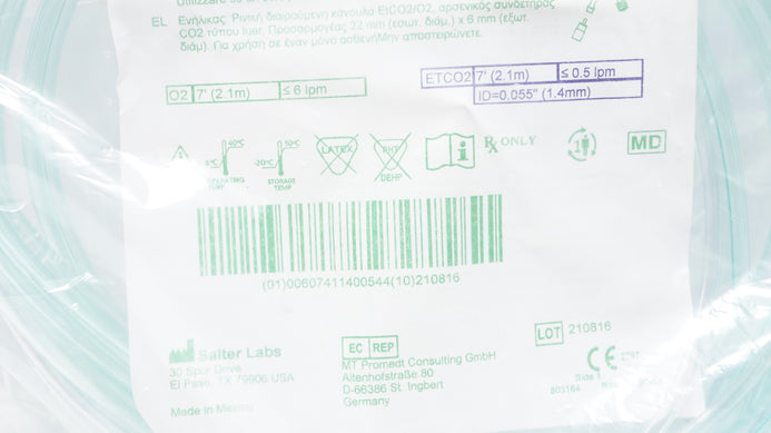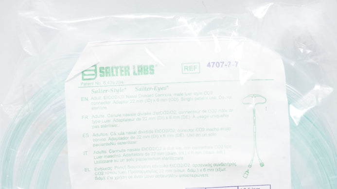 - Salter Labs 4707-7-7 Salter-Style Adult EtCO2/O2 Nasal Divided Cannula 7ft.