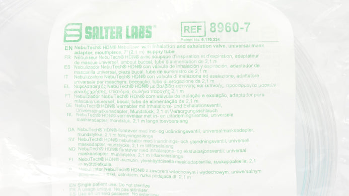 - Salter Labs 8960-7 NebuTech HDN Nebulizer w/Inhalation&Exhalation Valve 7ft.Tube