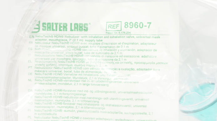 - Salter Labs 8960-7 NebuTech HDN Nebulizer w/Inhalation&Exhalation Valve 7ft.Tube