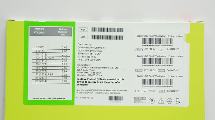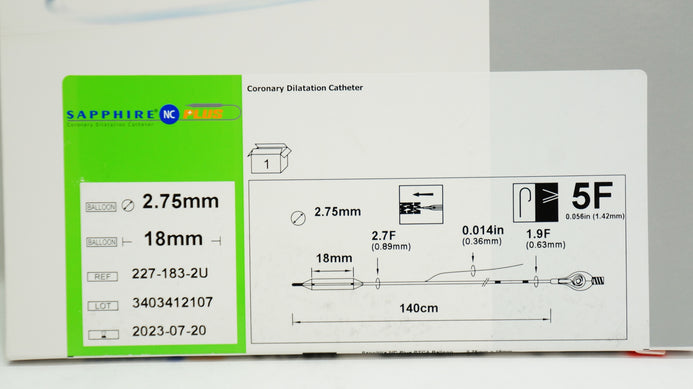 - Sapphire 227-183-2U NC Plus Coronary Dilatation Cath. 5F 2.75mm x 18mm (x)