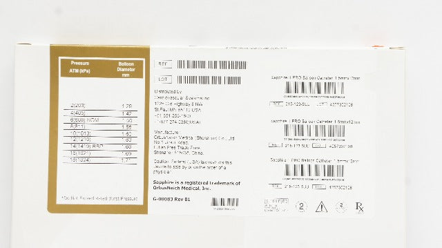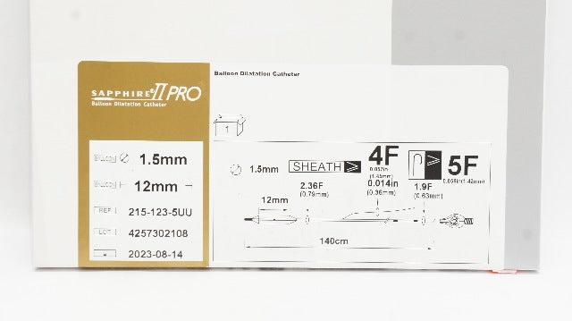 - Sapphire II Pro 215-123-5UU Balloon Dilatation Cath. 1.5mm x 12mm,4F x 5F (x)
