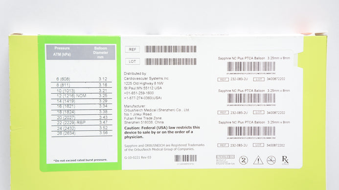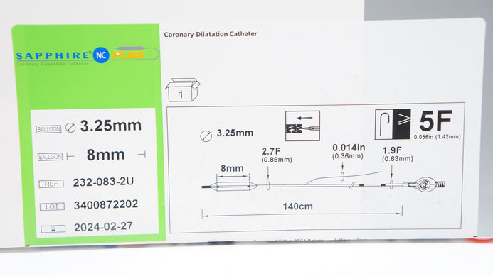 - Sapphire NC Plus 232-083-2U Coronary Dilatation Cath. 3.25mm x 8mm (x)