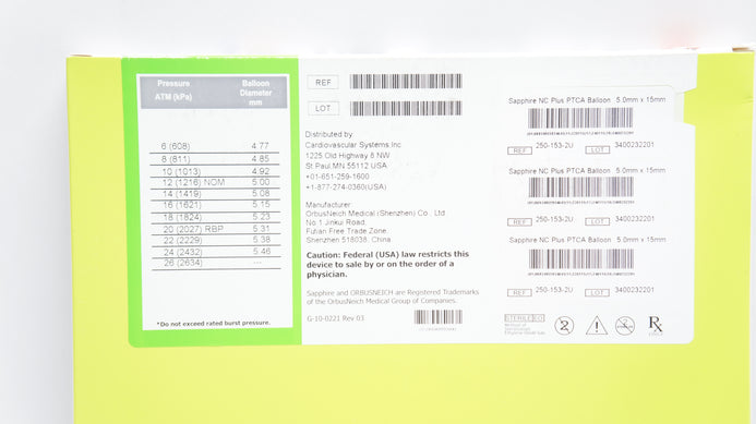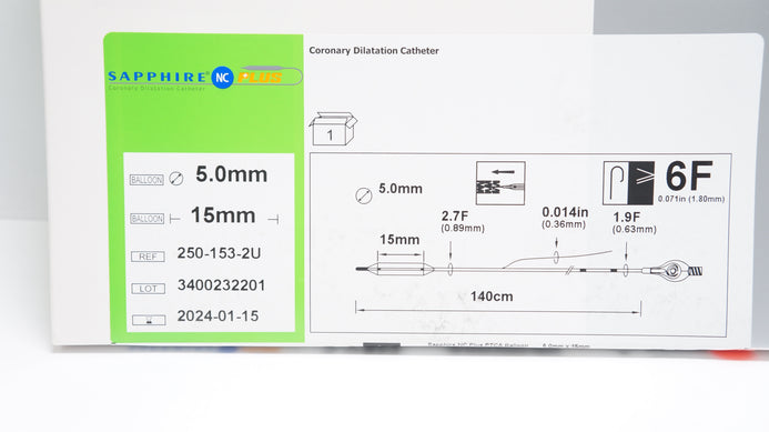 - Sapphire NC Plus 250-153-2U Coronary Dilatation Cath. 5.0mm x 15mm (x)