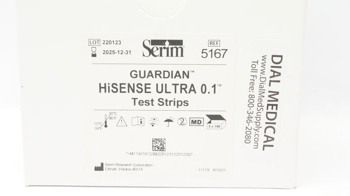 - Serim Research 5167 Guardian HiSense Ultra 0.1 Test Strips - Box of 500
