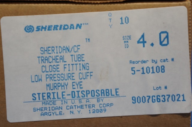 - Sheridan 5-10108 CF Tracheal Tbe Clse Fitting Low Pressure Cuff 4.0mm~Box of 10