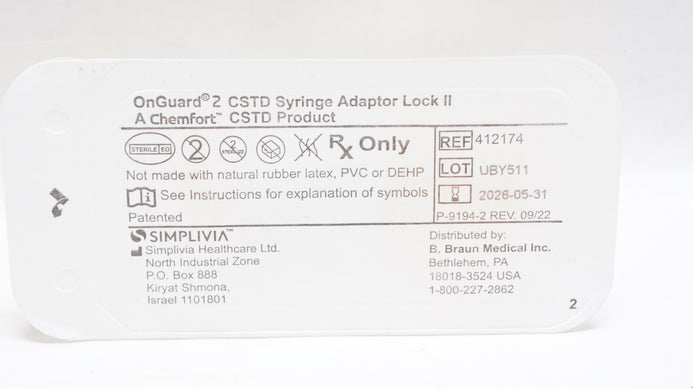 - Simplivia 412174 Braun OnGuard 2 CSTD Syringe Adaptor Lock II