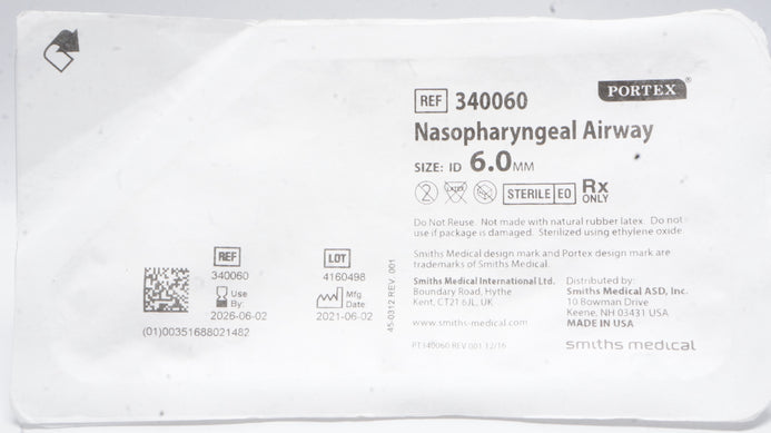 - Smith Medical 340060 Portex Nasopharyngeal Airway 6.0mm I.D. (x)