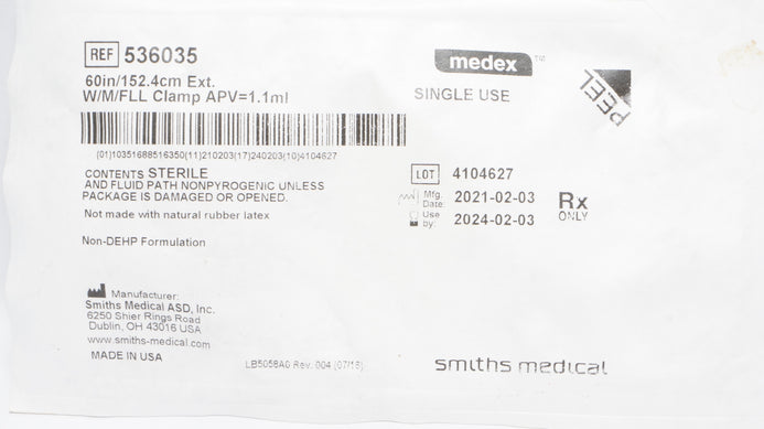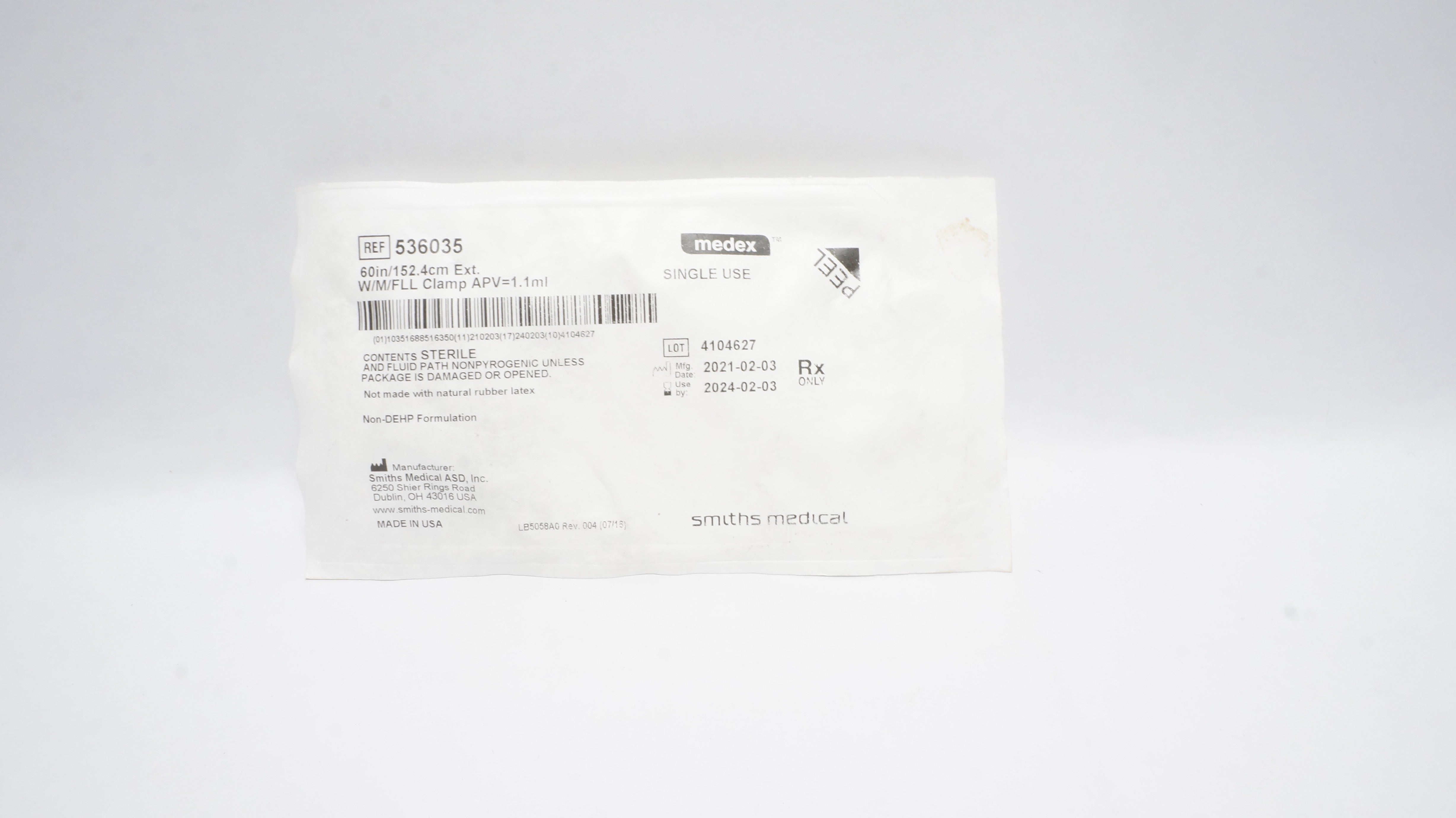 - Smith Medical 536035 Medex 60inch/152.4cm Ext. W/M/FLL Clamp APV=1.1ml (x)