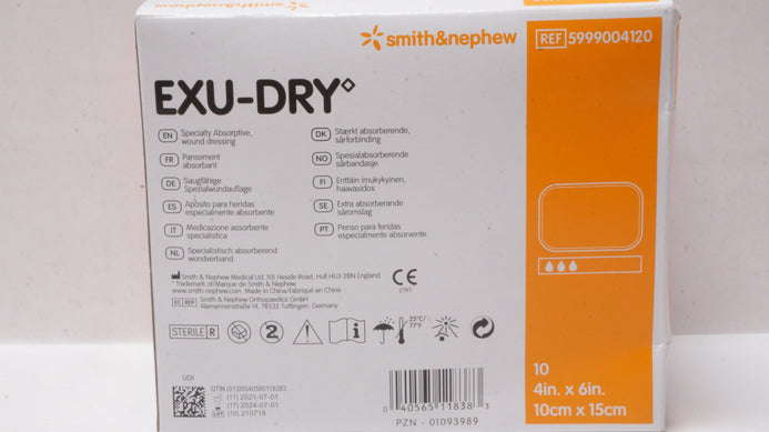 - Smith & Nephew 5999004120 Exu-Dry Absorptive Wound Dressing 4 x 6inch -Box of 10