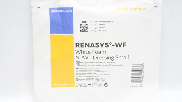 - Smith&Nephew 66027659 RENASYS WF, White Foam NPWT Dressing Small 7.5 x 10 x 1cm