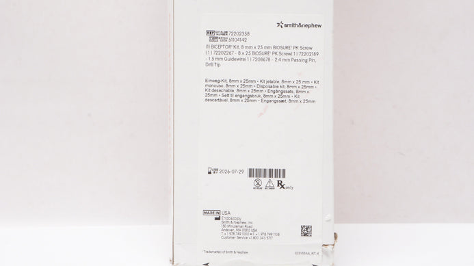 - Smith&Nephew 72202358 Biceptor Kit, 8mm x 25mm