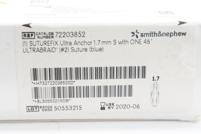 Smith&Nephew 72203852 Suturefix Ultra Anchor 1.7mm S with One 46 Degree Ultrabraid