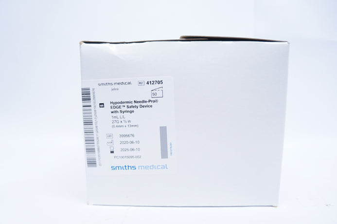 - Smiths 412705 Hypodermic Needle Pro EDGE Safety Device 1mLx27Gx1/2inch-box of 50