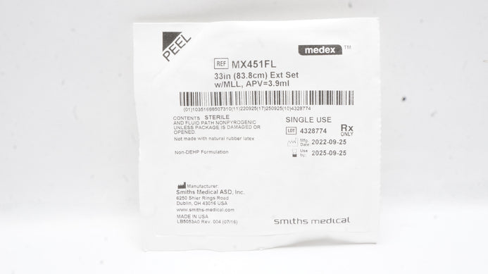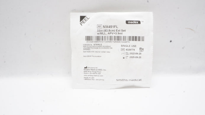 - Smiths Medcal MX451FL Medex Extension Set 33inch x 3.9ml
