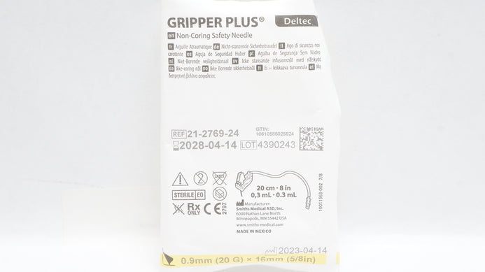 - Smiths Medical 21-2769-24 Deltec Gripper Plus Non-Coring Safety Ndle 20Gx5/8inch