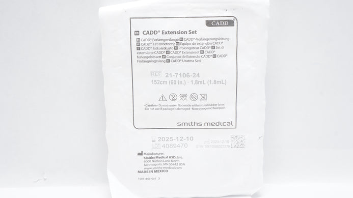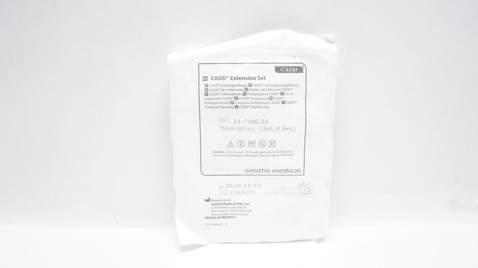 - Smiths Medical 21-7106-24 CADD Extension Set 60 inch x 1.8 mL