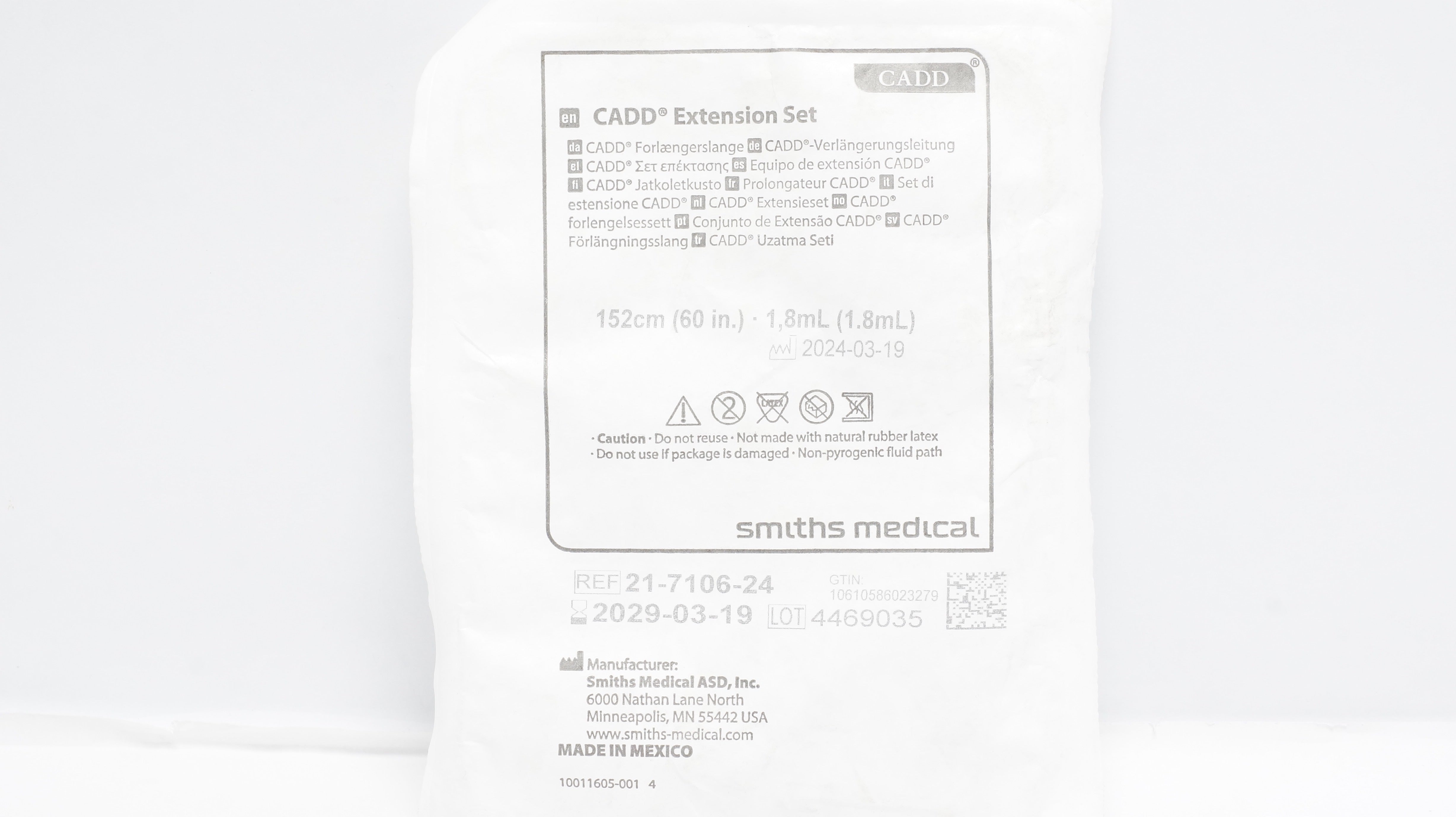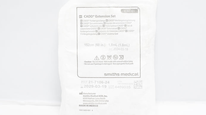 - Smiths Medical 21-7106-24 CADD Extension Set 60 inch x 1.8 mL