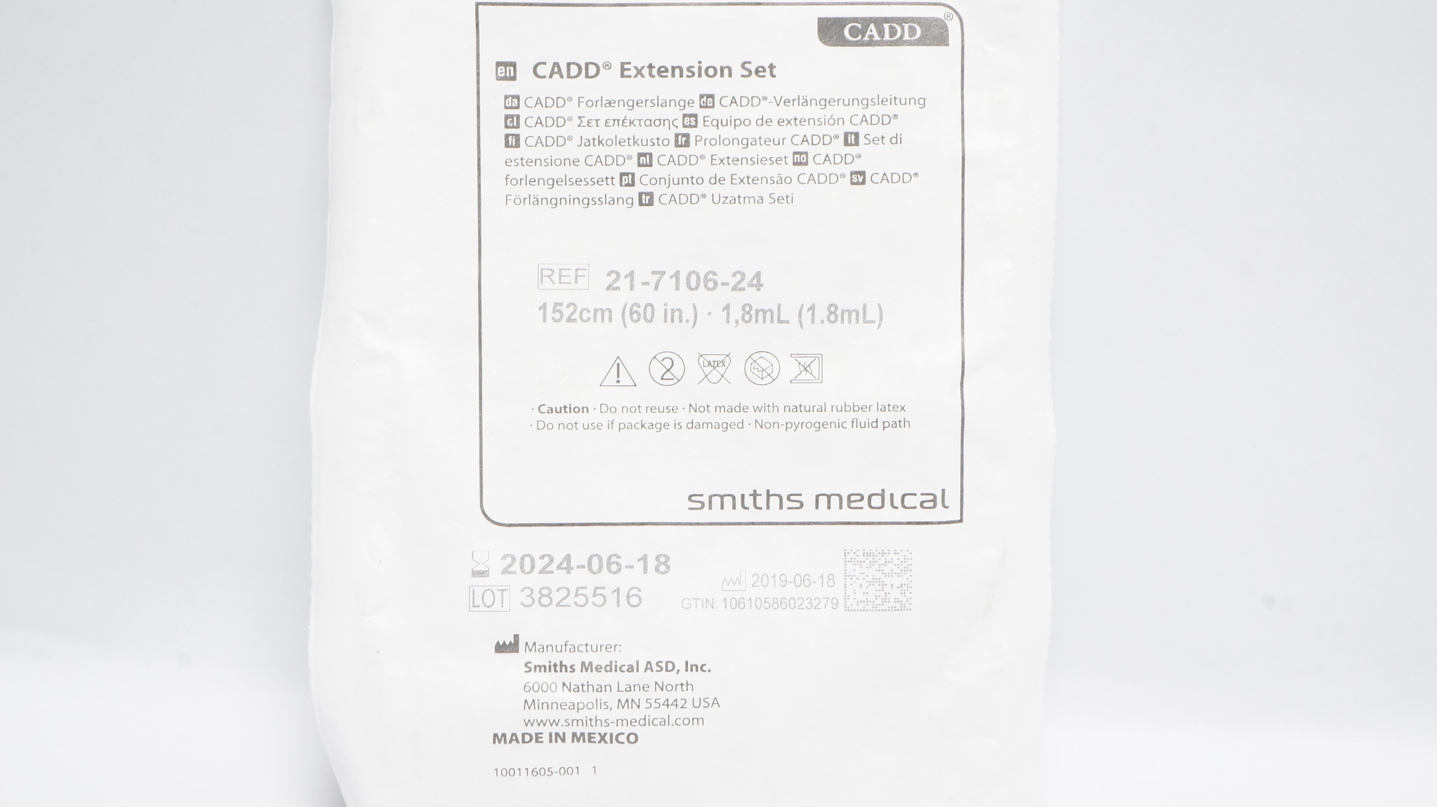 - Smiths Medical 21-7106-24 CADD Extension Set 60inch x 1.8mL (x)