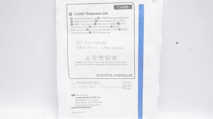 - Smiths Medical 21-7109-24 CADD Extension Set 90inch x 2.4mL