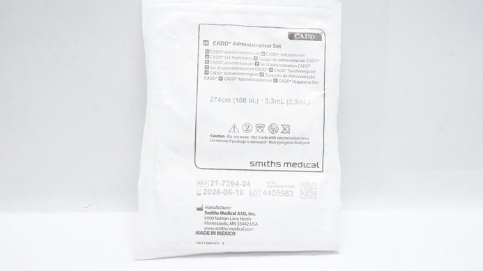 - Smiths Medical 21-7394-24 CADD Administration Set 108inch x 3.3mL