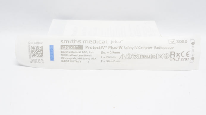 - Smiths Medical 3060 Jelco ProtectIV Plus Safety Cath. 22G x 1inch, 38ml/min