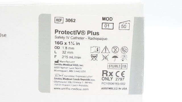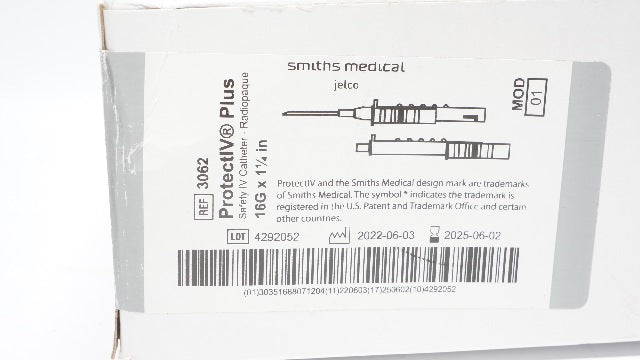 - Smiths Medical 3062 Jelco ProtectIV Plus 16G x 1-1/4 inch (x) - Box of 50