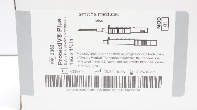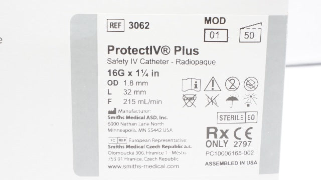 - Smiths Medical 3062 Jelco ProtectIV Plus 16G x 1-1/4 inch - Box of 50