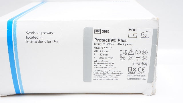 - Smiths Medical 3062 Jelco ProtectIV Plus Safety Cath. 16G x 1-1/4inch- Box of 33