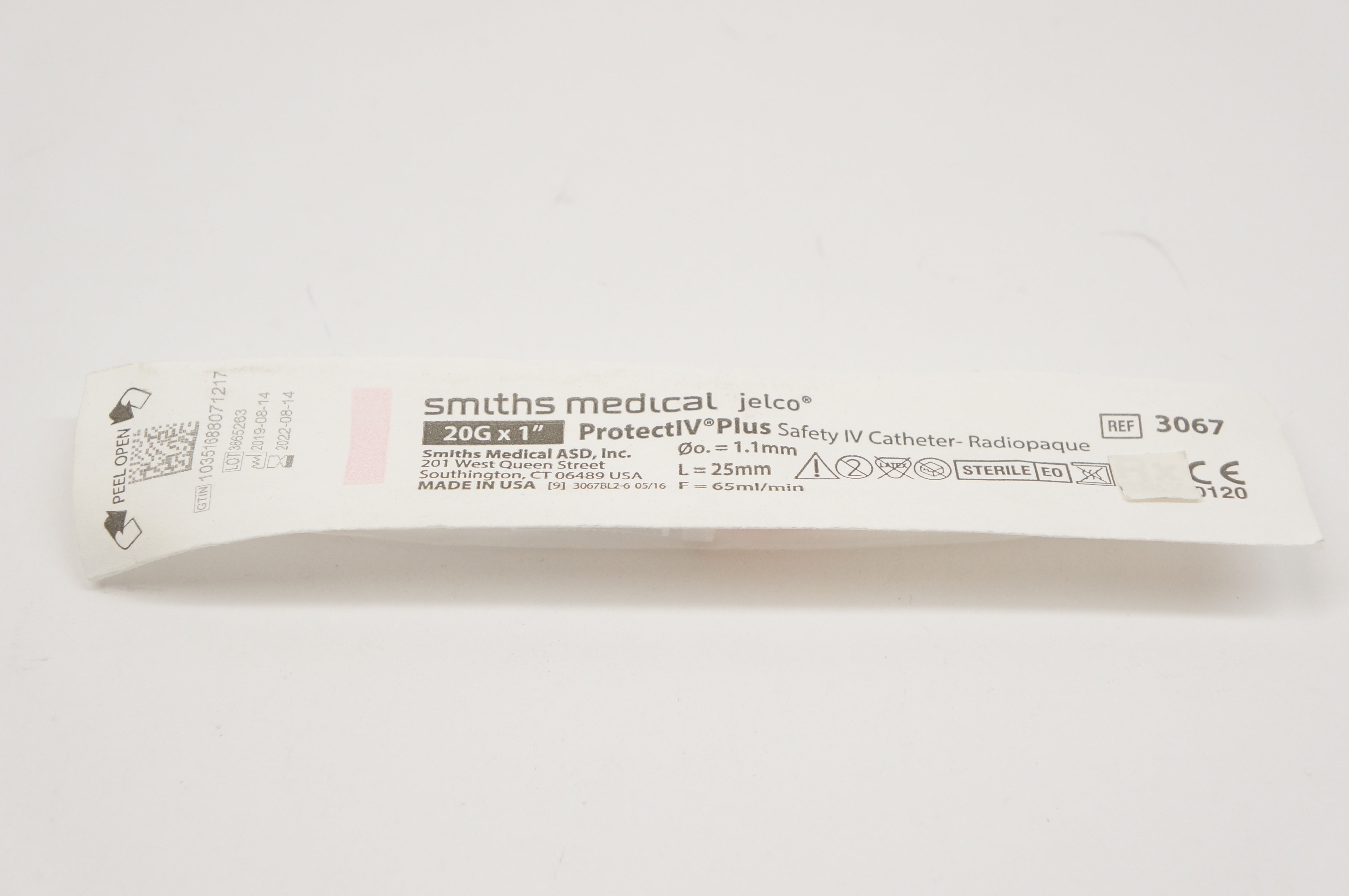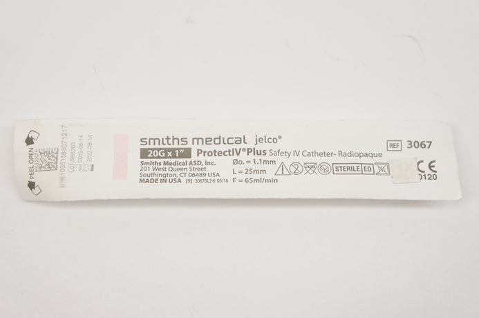 - Smiths Medical 3067 Jelco ProtectIV Plus Safety IV Cath. Radiopaque, 20G x 1inch