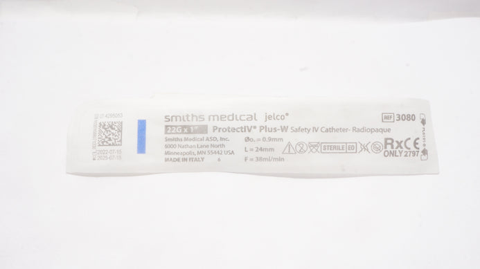 - Smiths Medical 3080 Jelco Protect IV Plus-W Safety IV Cath. 22G x 1 inch
