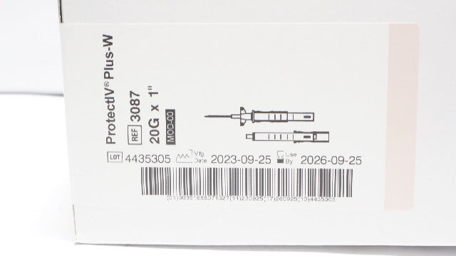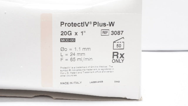 - Smiths Medical 3087 ProtectIV Plus-W Safety IV Caths. 20G x 1inch - Box of 50