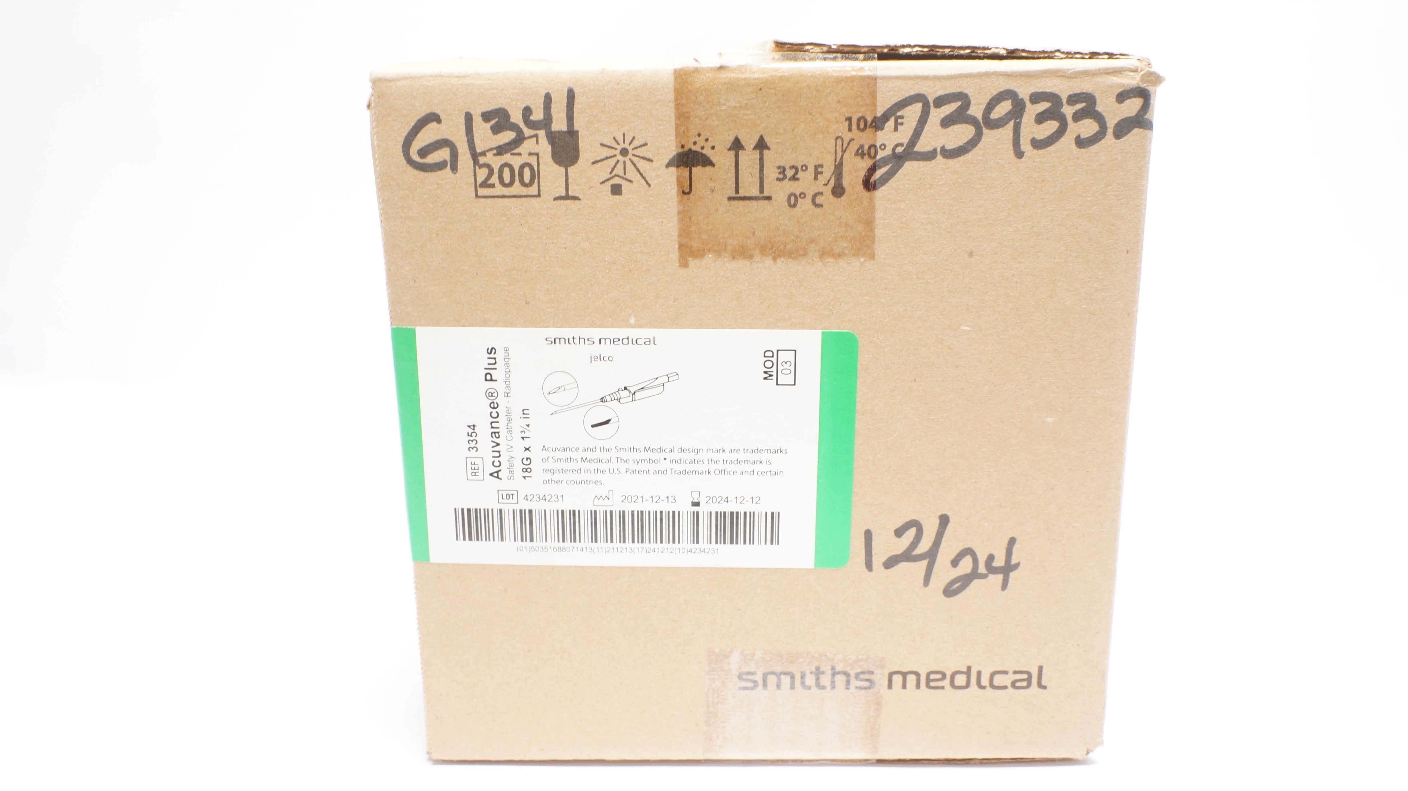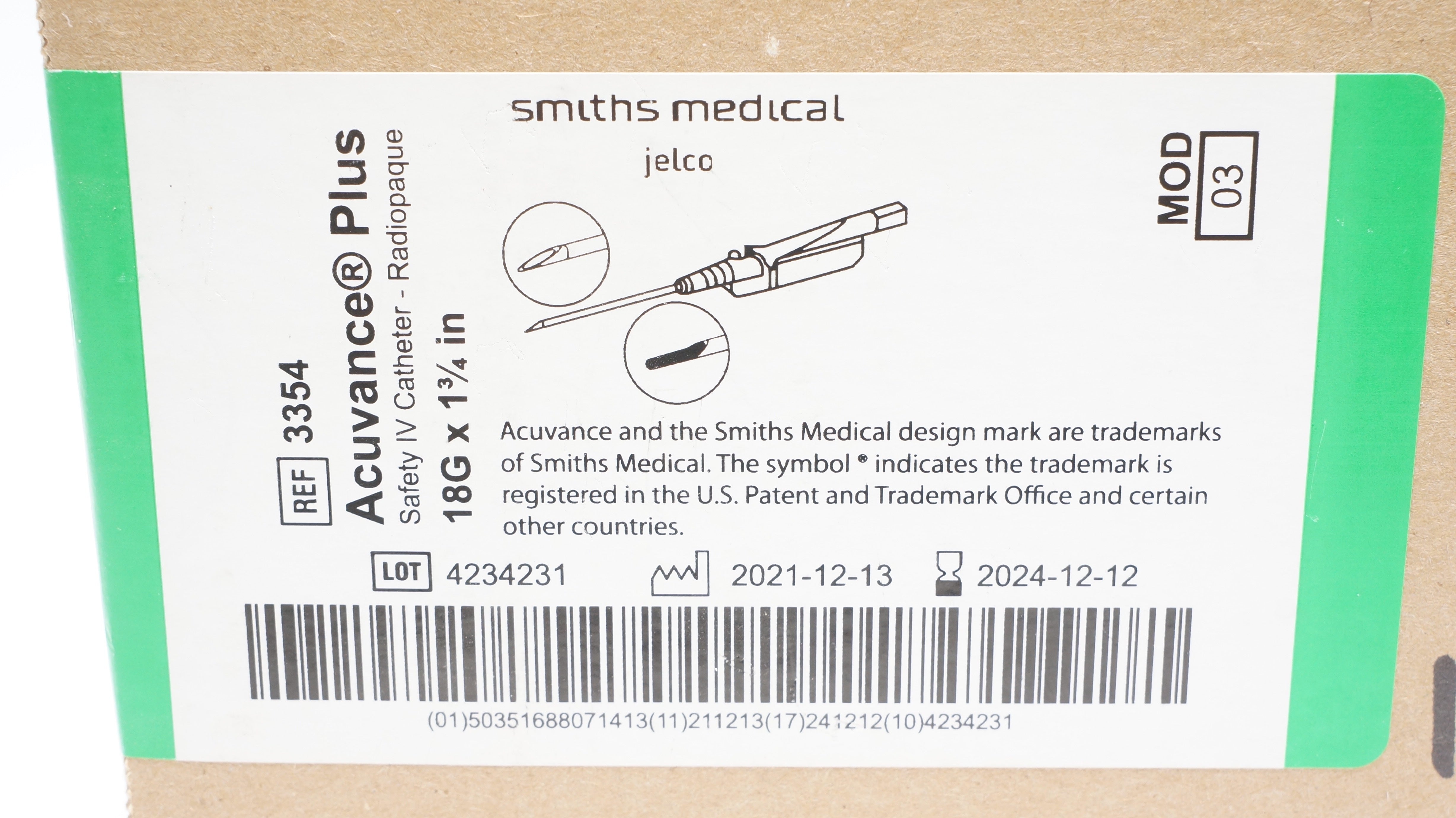 - Smiths Medical 3354 JELCO Acuvance Plus IV Cath. 18G x 1-3/4in (x) - Case of 200