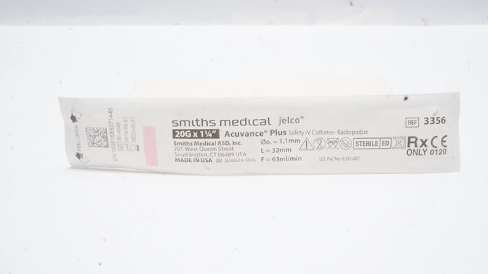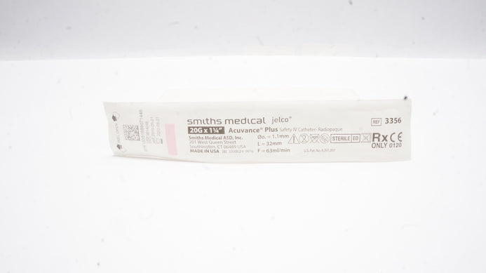 - Smiths Medical 3356 Jelco Acuvance Plus Safety IV Catheters, 20G x 1 1/4inch (x)
