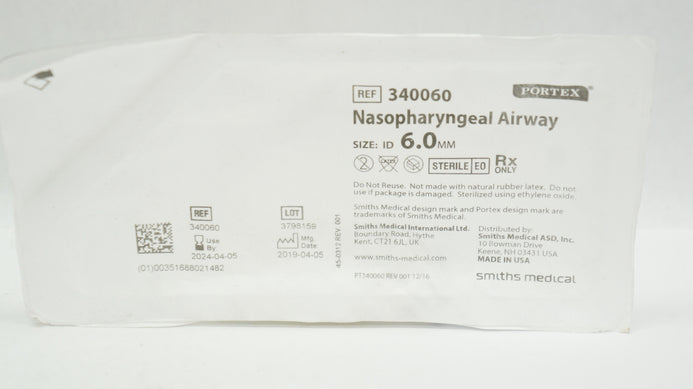 - Smiths Medical 340060 Portex Nasopharyngeal Airway 6.0mm I.D.