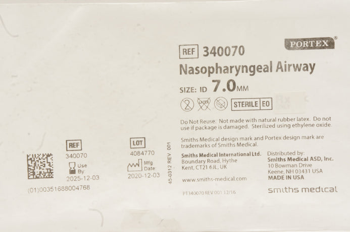 - Smiths Medical 340070 Nasopharyngeal Airway Size 7.0mm I.D.
