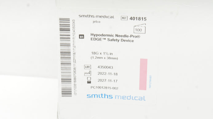 - Smiths Medical 401815 Jelco Hypodermic Safety Device 18G x 1-1/2 - Box of 100