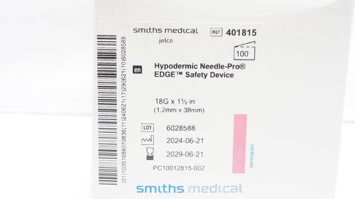 - Smiths Medical 401815 Jelco Hypodermic Safety Device 18G x 1-1/2 - Box of 100