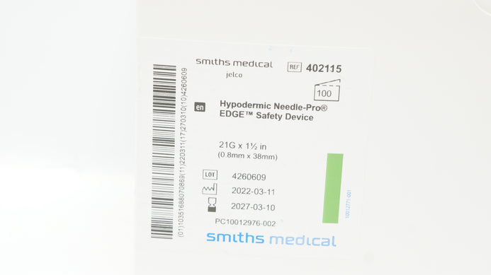 - Smiths Medical 402115 Hypodermic Ndle-Pro Safety Device 21G x 1-1/2in-Box of 100