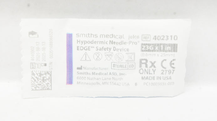 - Smiths Medical 402310 Jelco Hypodermic Ndle-Pro EDGE Safety Device 23G x 1inch