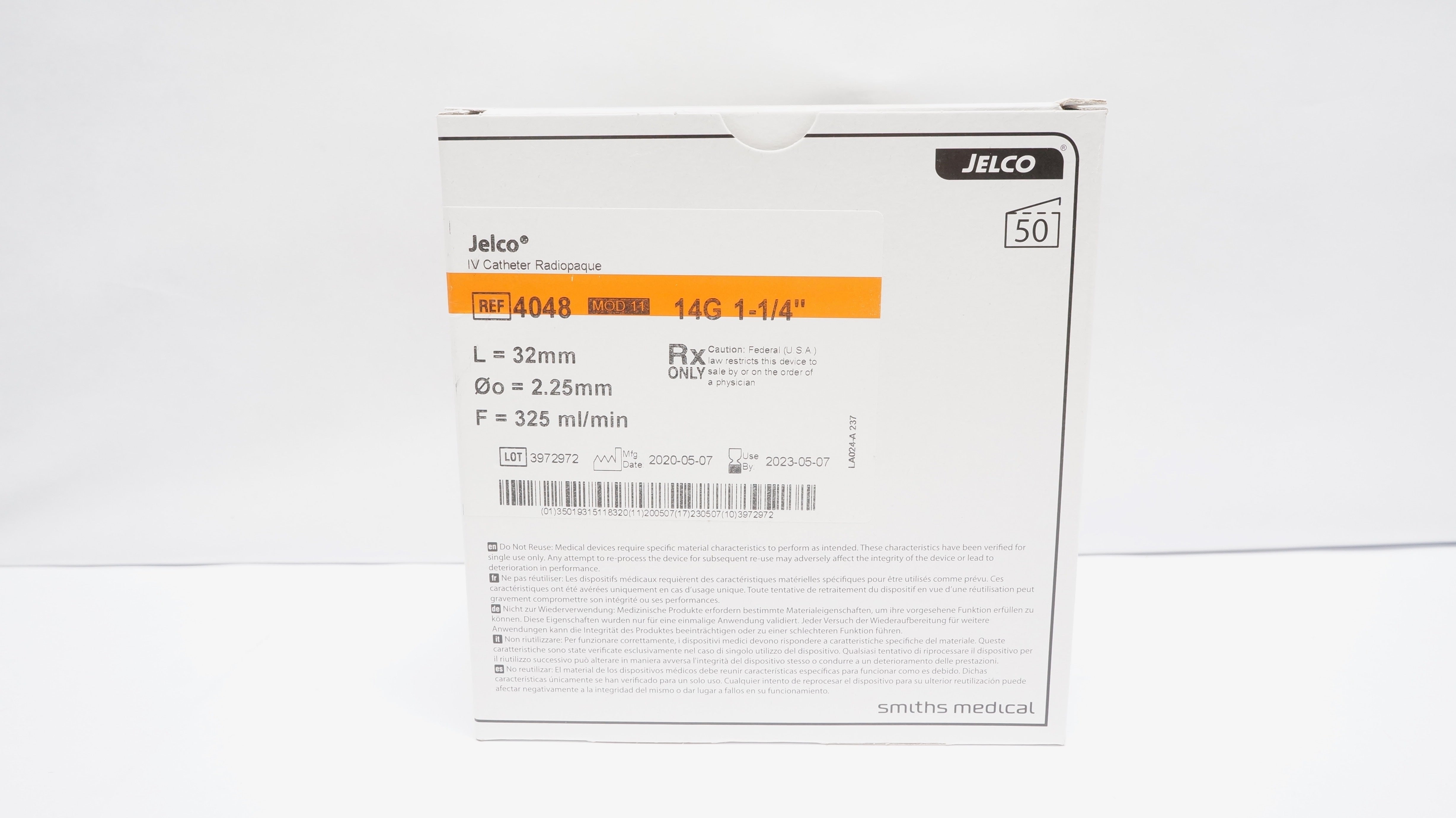 - Smiths Medical 4048 Jelco IV Cath. Radiopaque 14G 1-1/4inch - Box of 50 (x)