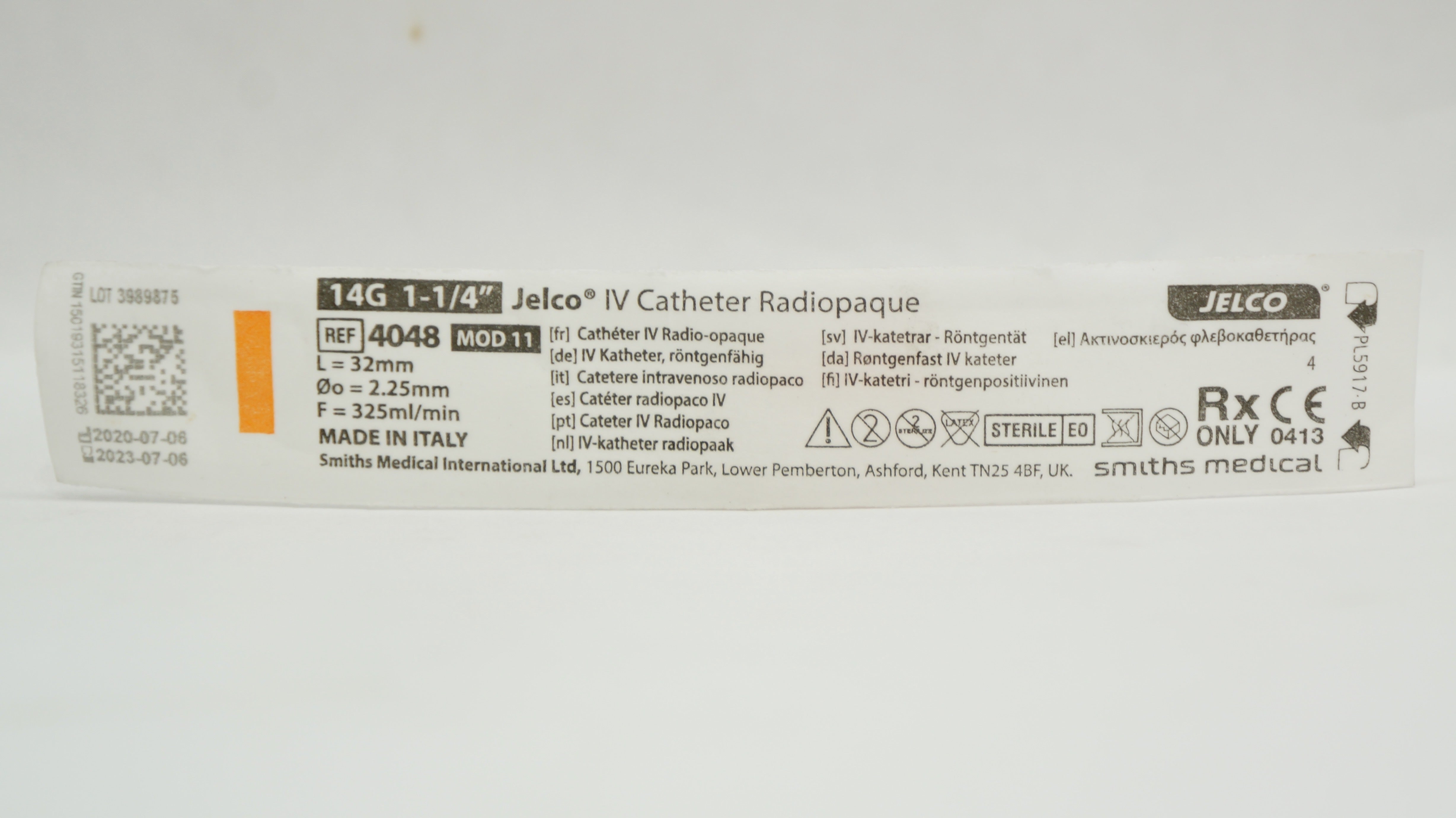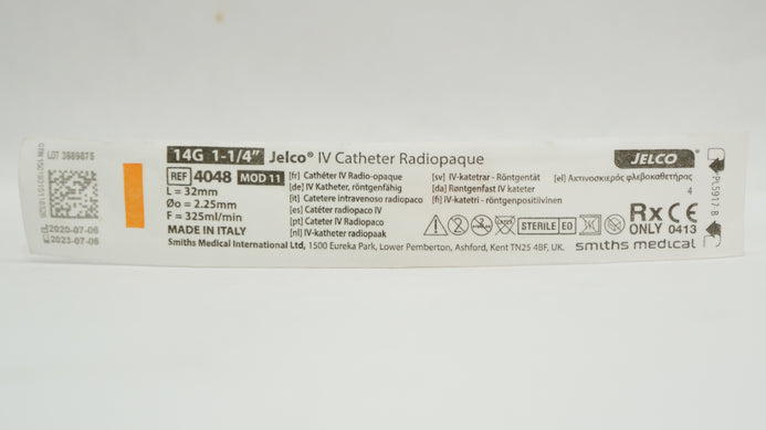 - Smiths Medical 4048 Jelco IV Cath. Radiopaque Mod 11 14G 1-1/4inch 325ml/min (x)