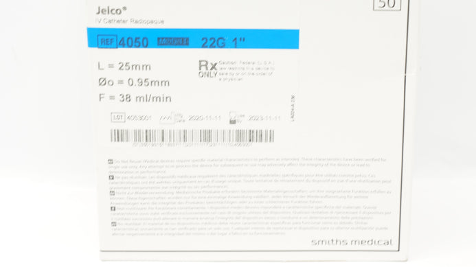 - Smiths Medical 4050 Jelco I.V. Cath. Radiopaque 22G x 1inch (x) - Box of 23