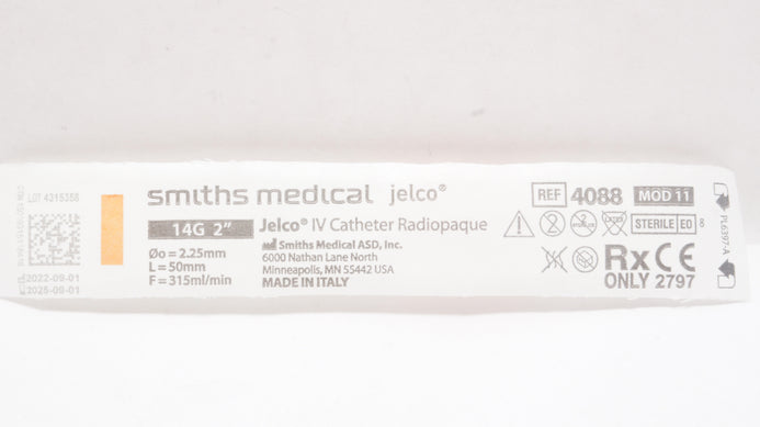 - Smiths Medical 4088 Jelco I.V. Cath. Radiopaque 14G x 2inch (x) - Lot of 5