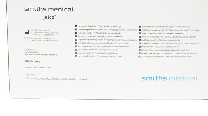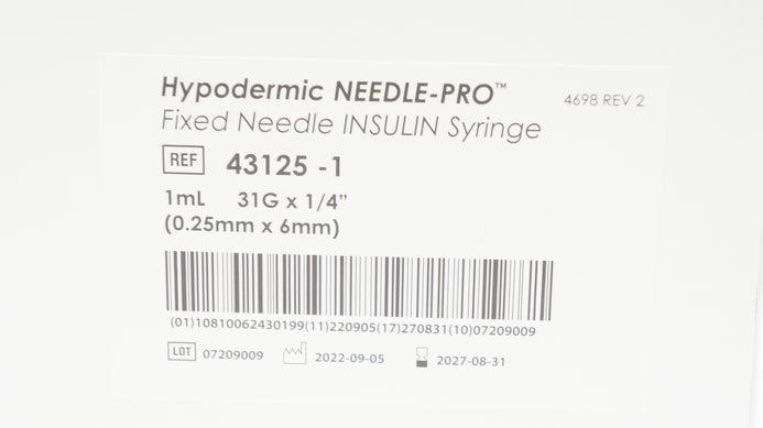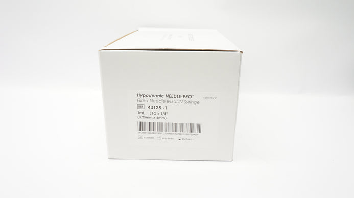 - Smiths Medical 43125-1 Fixed Ndle Insulin Syringe 1ml 31G x 1/4inch - Box of 100