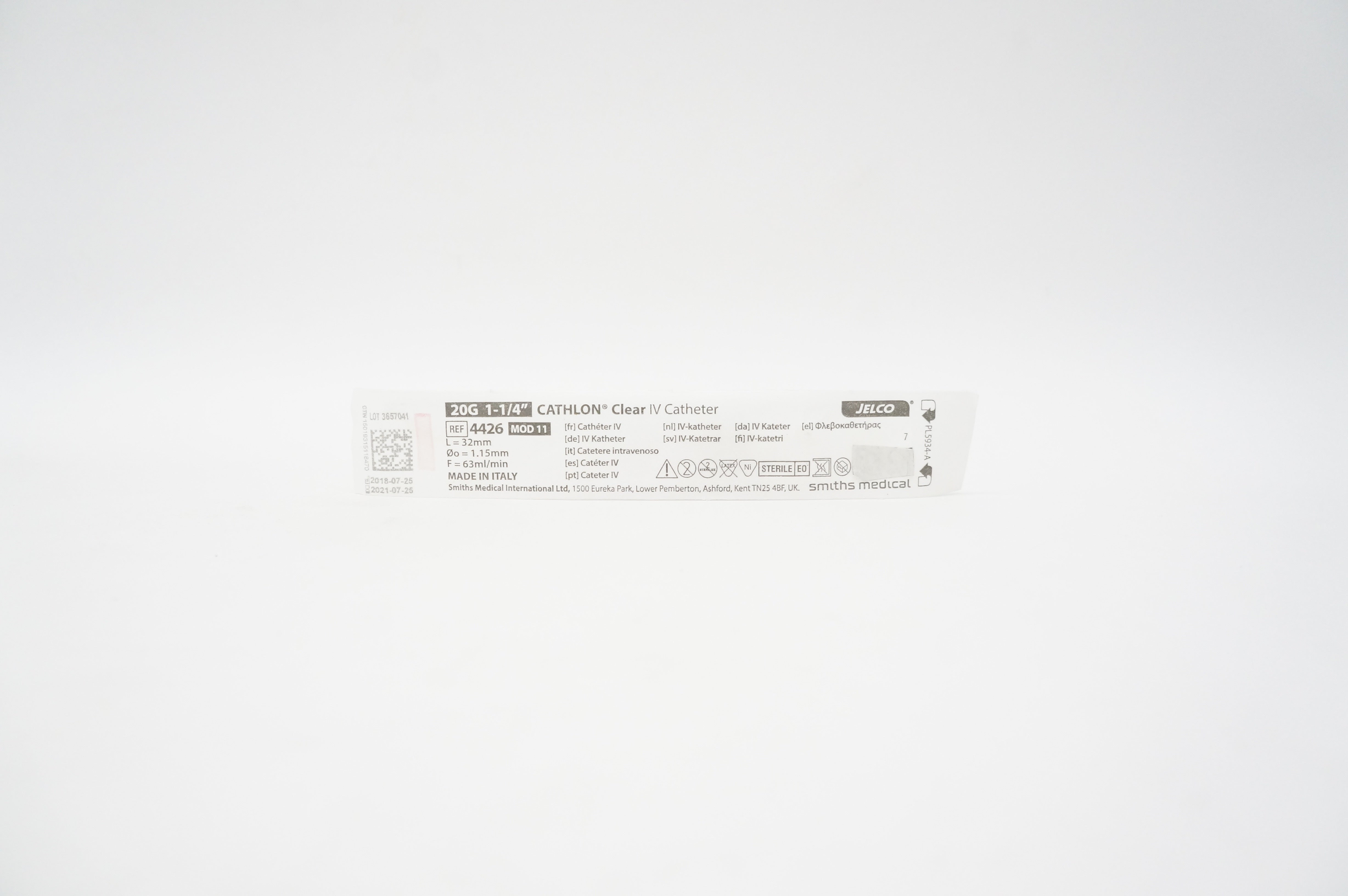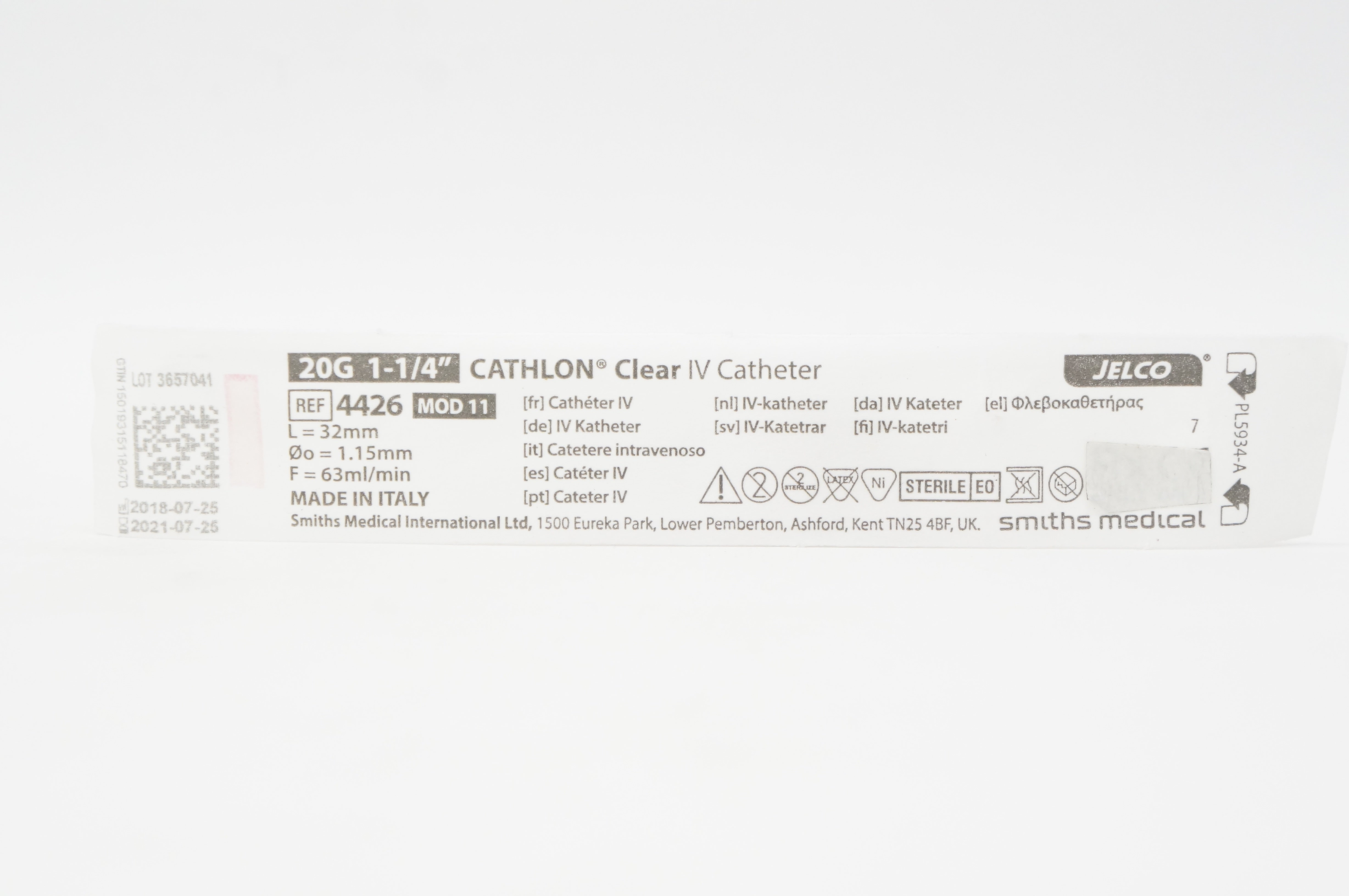 - Smiths Medical 4426 Jelco Cathlon Clear IV Cath. 20G x 1 1/4inch (x)