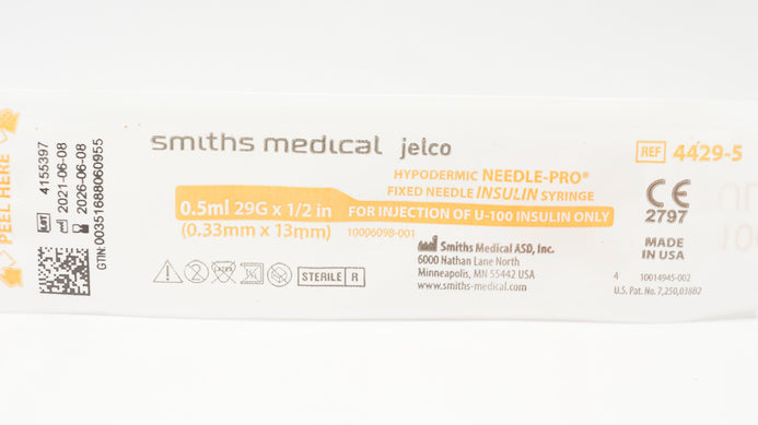 - Smiths Medical 4429-5 Hypodermic Needle-Pro Insulin Syringe 29G x 1/2inch 0.5ml