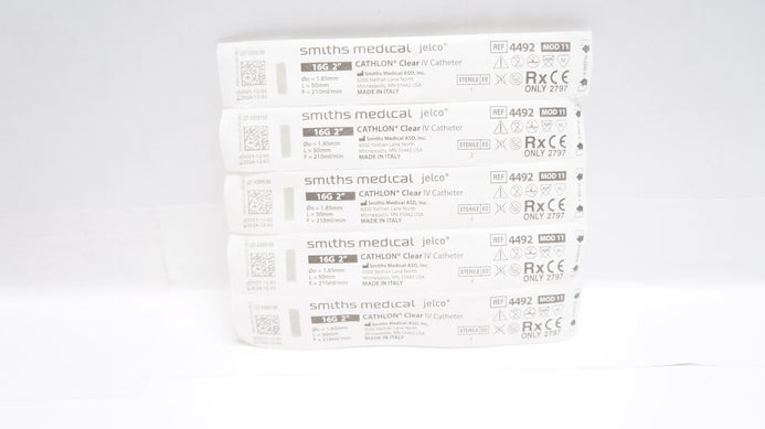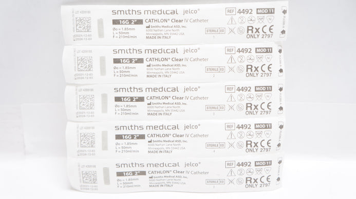 - Smiths Medical 4492 Jelco Cathlon Clear I.V. Cath. 16G x 2inch - Pack of 5