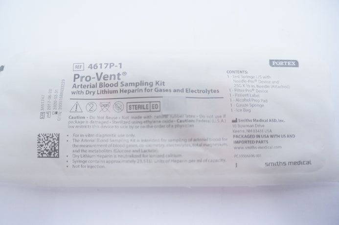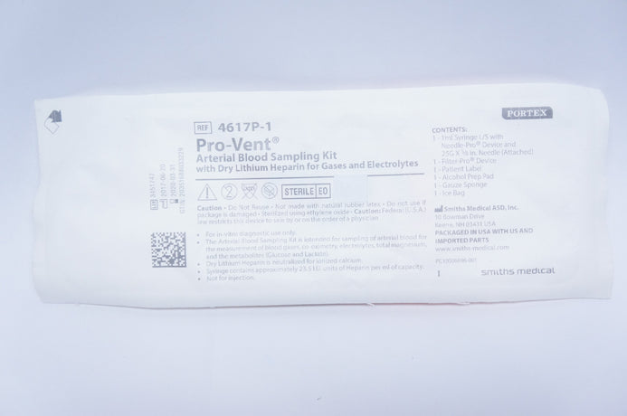 - Smiths Medical 4617P-1 Pro-Vent Arterial Blood Sampling Kit (x)