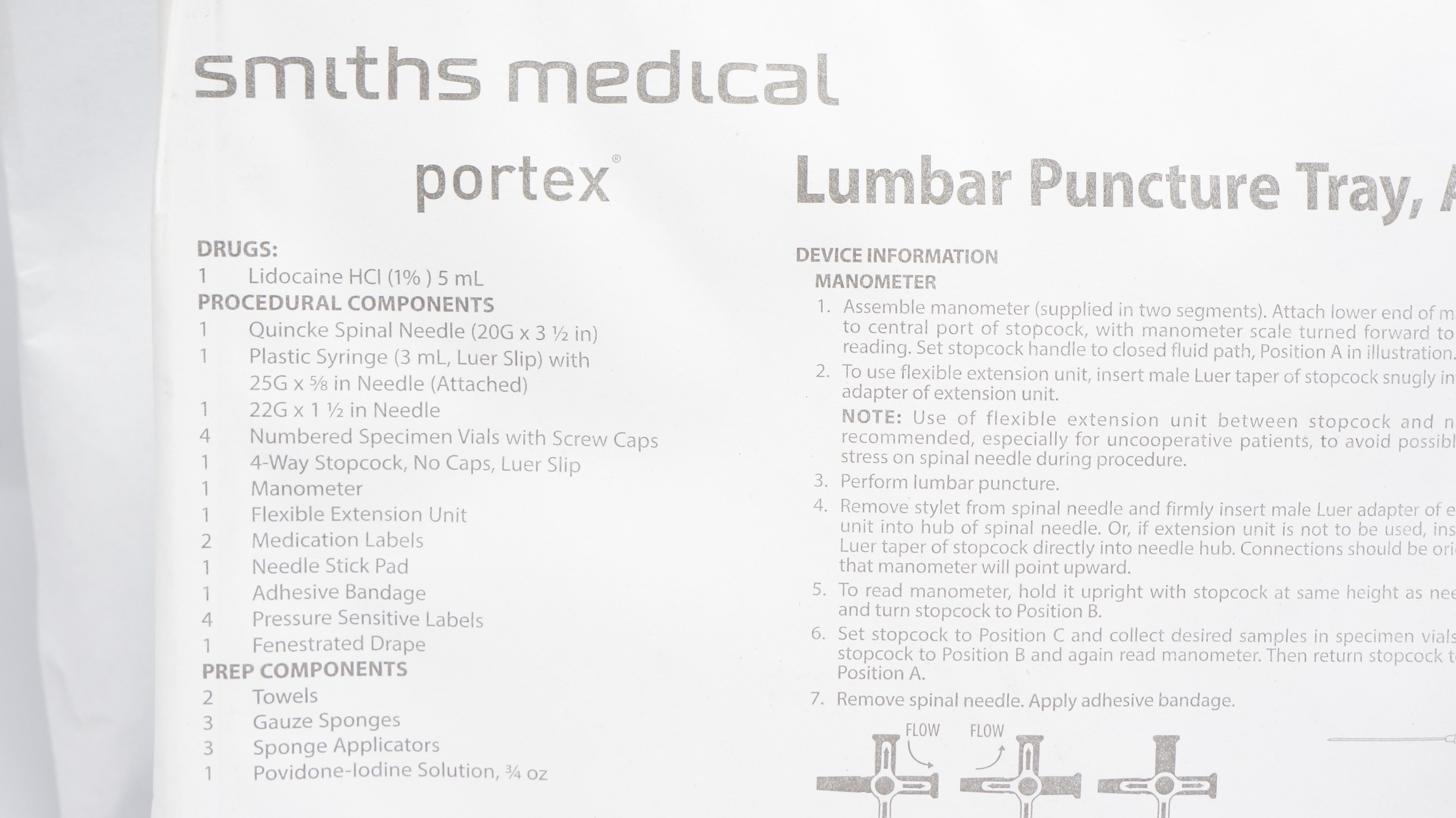 - Smiths Medical 4824-20 Portex Adult Lumbar Puncture Ndle 20G x 3 1/2inch