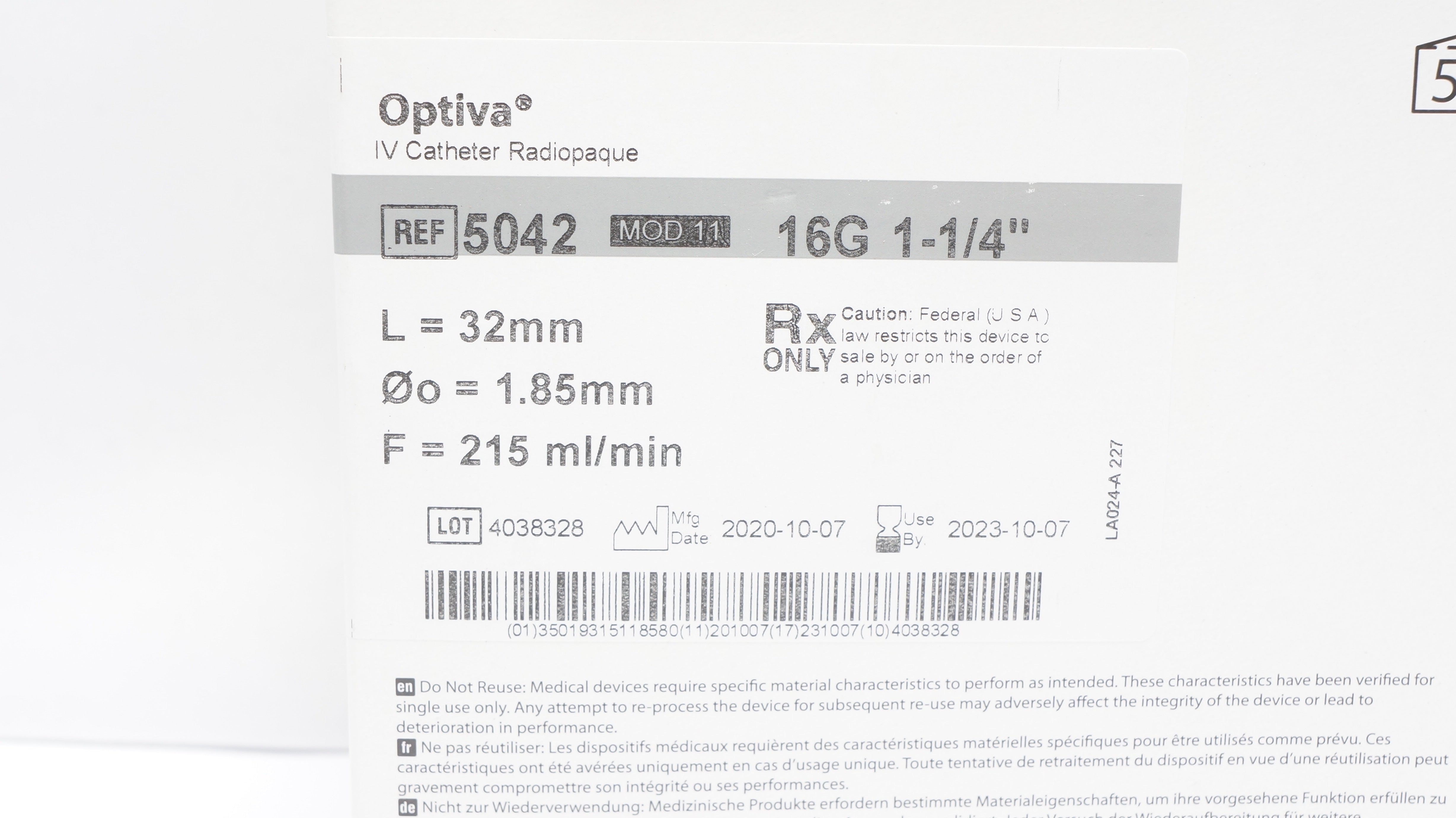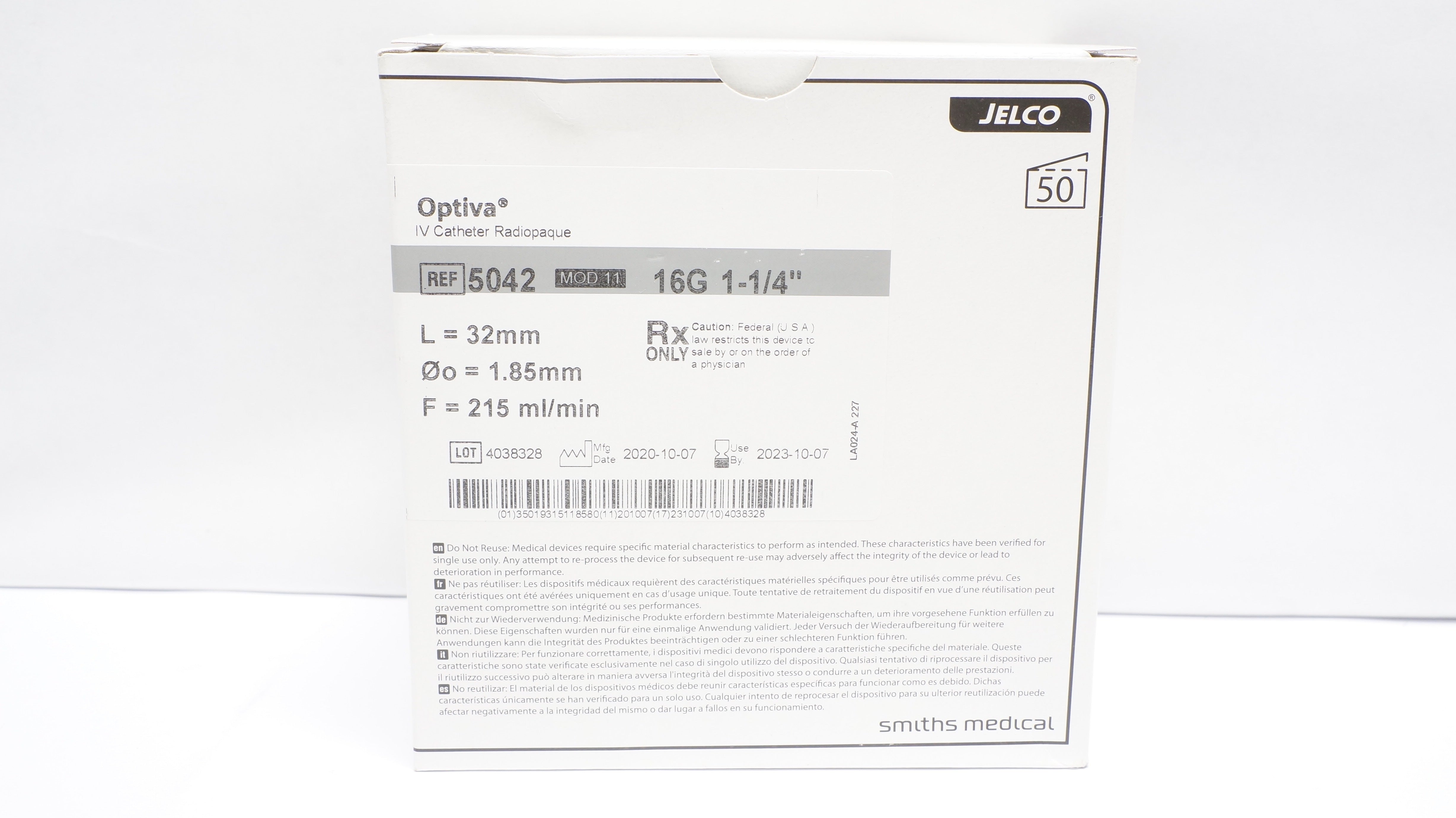 - Smiths Medical 5042 Jelco Optiva IV Cath. 16G x 1-1/4inch - Box of 50 (x)